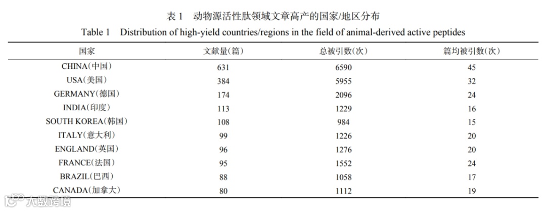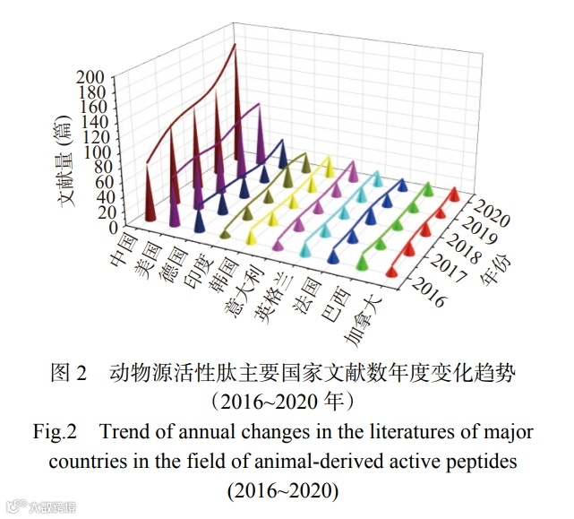 兰州理工大学任海伟教授等结合多种文献计量工具,从发文时间、国家发文量、研究机构和期刊分布、关键词等多角度对动物源活性肽的研究态势进行梳理和总结,以期有助于相关学者了解全球范围该领域的研究发展态势,更好地把握最新研究动态。