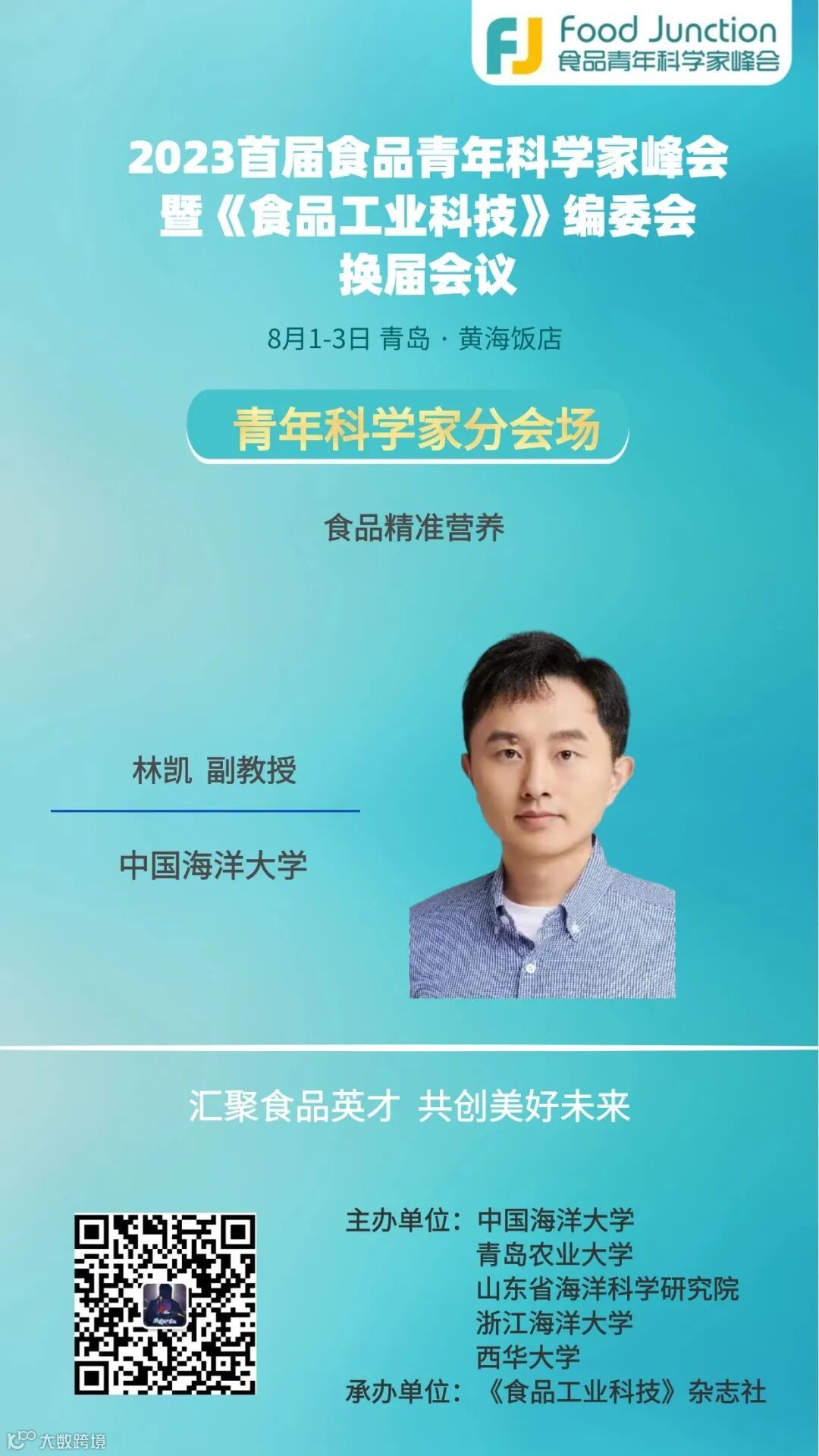 林凯,副教授,硕士研究生导师,中国海洋大学食品科学与工程学院功能性乳品与益生菌团队。主要从事功能益生菌挖掘及其肠道互作机制研究,乳源磷脂/蛋白功能研究及高活力乳酸菌关键组件保护机制研究。代表性论文以第一作者或通讯作者(含共同)发表于Advanced Functional Materials,Angewandte Chemie International Edition,Journal of Controlled Release,Food Chemistry,Journal of Agricultural and Food Chemistry等期刊。主持省部级基金项目5项。