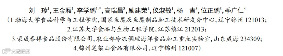 金线鱼肌球蛋白凝胶的微观结构与其凝胶特性密切相关。如图10所示,对照组凝胶有大而不规则的孔洞且表面粗糙。0~4%的添加量范围内,随着SPI添加量的增加,凝胶表面孔洞减少且变得光滑、结构更加致密;4%~8%的添加量范围内随着SPI添加量的增加,凝胶表面再次变得粗糙,孔洞增加但孔径较小。金线鱼肌球蛋白凝胶微观结构的改变可能与SPI对其凝胶网络的修饰有关,适量的SPI会填充在金线鱼肌球蛋白网络中,诱导蛋白质结构展开,暴露出更多的巯基和疏水性基团,并在加热后α-螺旋转化为β-折叠,最终导致凝胶网络结构更加致密均匀,而过量的SPI会黏附在金线鱼肌球蛋白凝胶网络上,形成厚的丝和孔,阻碍金线鱼肌球蛋白的交联。添加4% SPI时,金线鱼肌球蛋白凝胶网络结构最致密均匀,且表面平整,这与凝胶强度、质构特性、总巯基、化学作用力和流变特性的试验结果一致。Lin等研究发现将14%(w/w)的植物蛋白混合物加入肌原纤维蛋白中,形成的混合蛋白凝胶的微观结构更加致密均匀,与本文的结果相似。