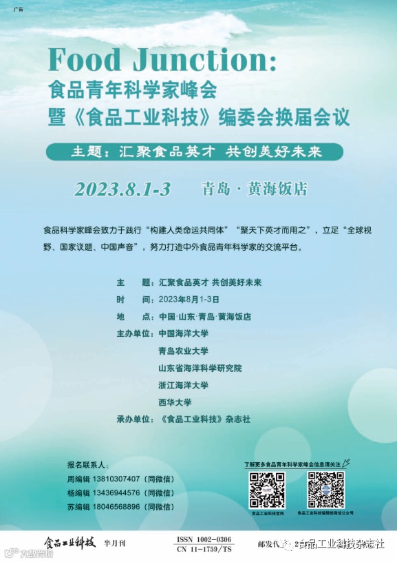 面向研究生及企业研发人员征集食品及相关领域的研究成果的中英文摘要。