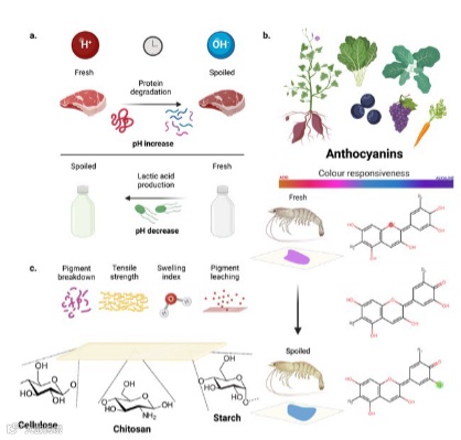 图5. 应用于监测变质的智能pH反应膜的物理特性