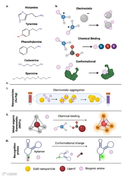 在此,该文通过三个关键的食品品质标志物--生物胺、pH值和致病菌,全面回顾了在这一领域开发的新兴智能材料和传感器。每个传感平台都有针对性地考虑了底层金属或聚合物基材对传感机制和检测性能的贡献。此外,该文还考虑了所介绍的工作在现实世界中的适用性,包括它们的能力、法规的遵守和商业潜力。最后,该文对智能食品监测技术的现状进行了评估,讨论了以材料为中心的战略,以解决其现有的限制、监管问题和商业考虑。