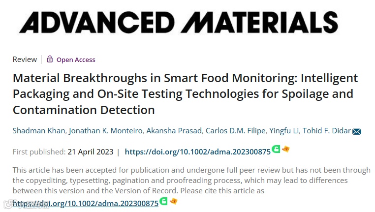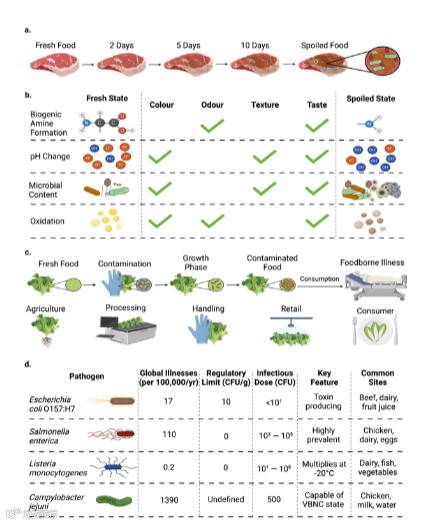 尽管采取了广泛的商业和监管干预措施,食品变质和污染仍然对人类健康和全球经济造成巨大影响。认识到这些问题将通过准确和及时地监测食品品质标志物而大大消除,智能食品传感器作为实时、包装内食品监测和现场商业测试的平台,已经获得了巨大的兴趣。在这两种情况下,所开发的传感器的灵敏度、稳定性和效率在很大程度上取决于基础材料的设计,从而促使人们关注为此类应用优化的先进材料的创造。