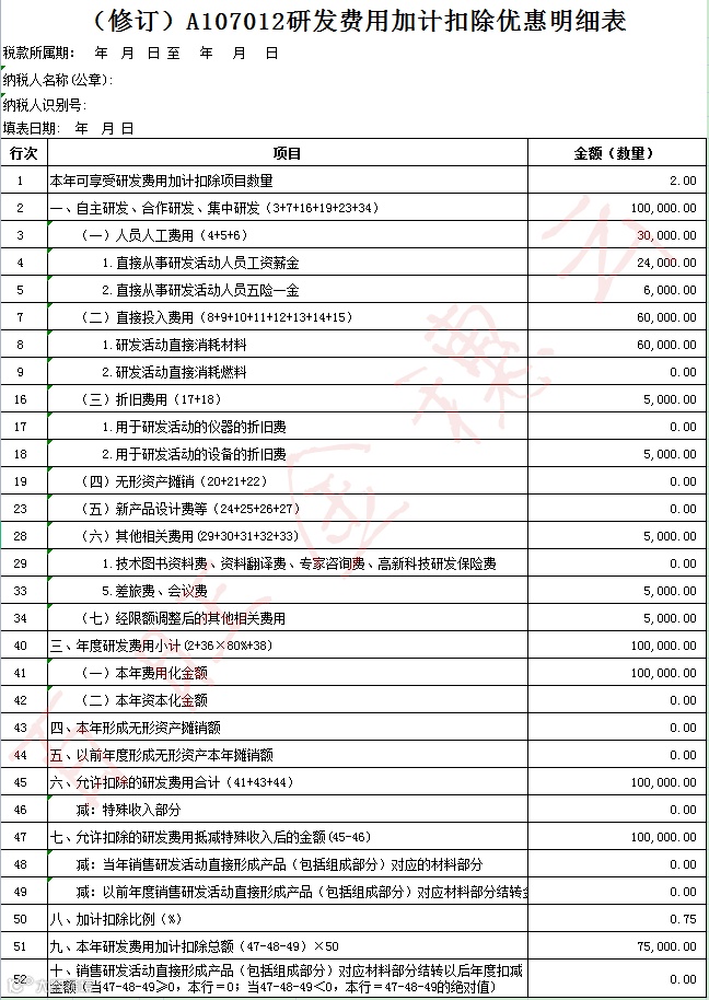很多存在研发费用的企业有疑惑,研发费用加计扣除优惠政策只能在次年所得税汇算时享受,这样就会存在提前预缴占用资金以及所得税汇算后可能需要办理退税的情况,但根据《财政部 税务总局关于进一步完善研发费用税前加计扣除政策的公告》(2021年第13号)从2021年1月1日起,符合条件的企业自行计算加计扣除金额,可以选择在10月预缴所得税时填报《中华人民共和国企业所得税月(季)度预缴纳税申报表(A类)》享受税收优惠,并根据享受加计扣除优惠的研发费用情况(上半年)填写《研发费用加计扣除优惠明细表》(A107012)(A107012不需报送税务机关,与相关政策规定的其他资料一并留存备查)。也就是说,以后在企业所得税预扣预缴的时候就可以享受加计扣除了,接下来就跟小编一起学习下吧~