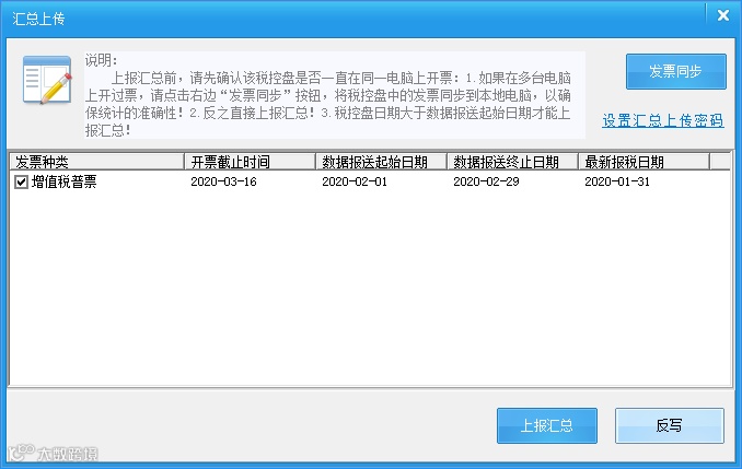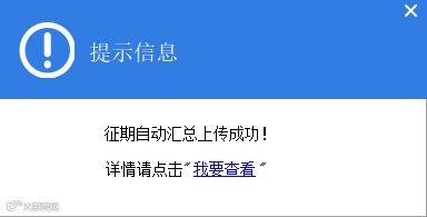 1.请您在计算机连接互联网状态下登陆开票系统,开票系统自动进行上报汇总并提示“征期自动汇总上传成功”。(如未连接互联网,电脑桌面右下角每天会弹框提示一次,直至征期结束)