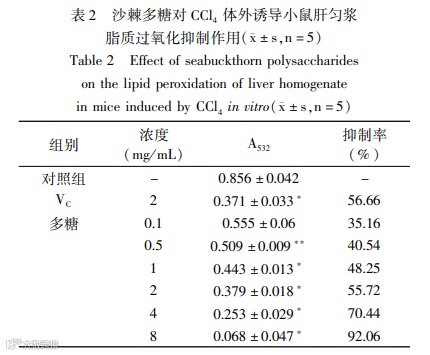 沙棘多糖清除自由基及抗脂质过氧化作用研究