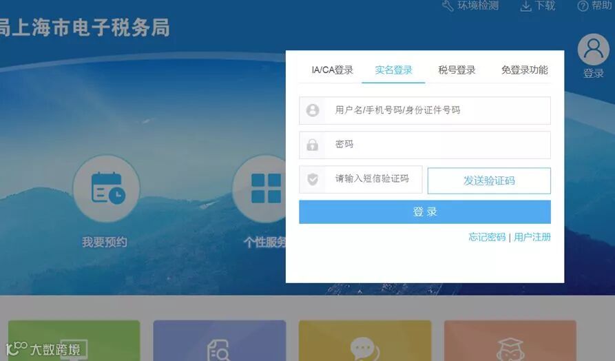 自然人用户输入用户名/手机号/身份证号、密码,点击【登录】。原上海市网上办税服务厅和上海市税务局网站的账号密码均可使用,登录后界面一致。对企业,支持CA/IA和税号登录方式。登录界面如下图所示: