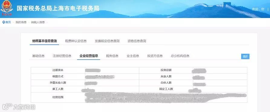 (3)企业经营信息内容为注册资本、投资总额、核算方式从业人数外籍从业人数、合伙人数、雇工人数、固定工人数经营范围,界面如下图所示: