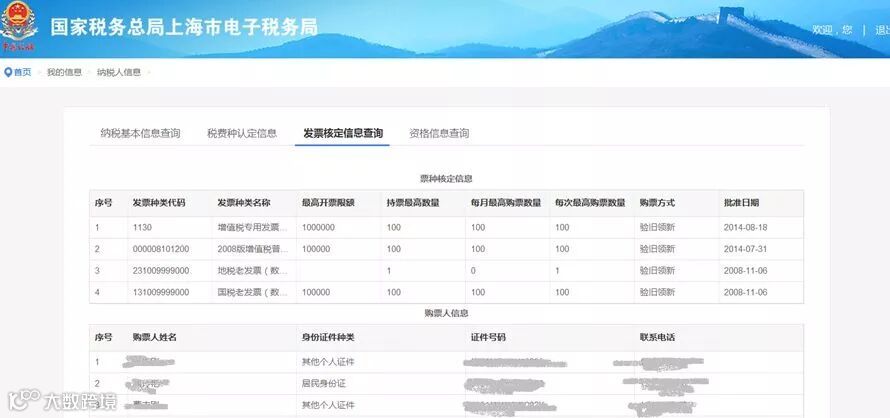 3.【发票核定信息】内容为包括票种核定信息和购票人信息,界面如下图所示: