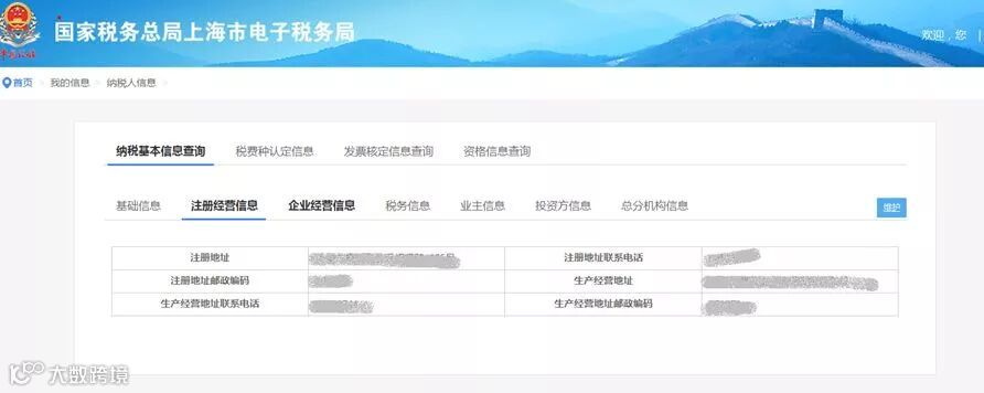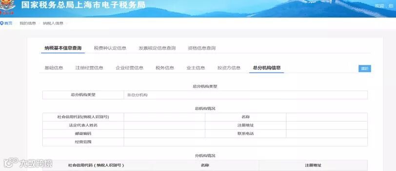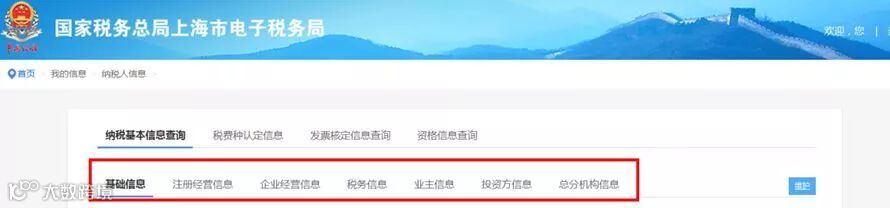 1.【纳税基本信息查询】内容为纳税人注册电子税务局的基本信息,包括基础信息、注册经营信息、企业经营信息、税务信息、业主信息、投资方信息、总分机构信息。界面如下图所示:
