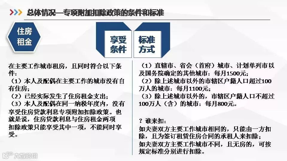 近期财税部门已经在就个税专项附加扣除操作进行内部培训,为个税减税政策的切实落地做准备。从税务部门培训材料来看,部分专项附加扣除的标准,相较征求意见稿的标准有所提高。比如住房租金的扣除标准中,前两类主要城市的标准,从原来的1200元/月和1000元/月,分别提高到了1500元/月和1100元/月;大病医疗的扣除限额从原来的6万元/年提高到8万元/年。
