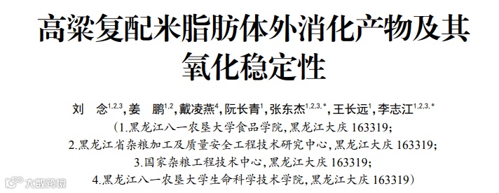 黑龙江八一农垦大学张东杰、李志江教授等考虑食物基质等对脂肪消化的影响,对高粱大米复配米饭整体进行体外模拟消化,探究复配米饭脂肪的消化产物及氧化稳定性,从而根据其消化的特性指导高粱大米复配米饭开发,为高粱等杂粮的食用提供新思路。