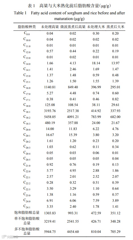 1 高粱与大米脂肪含量及组成