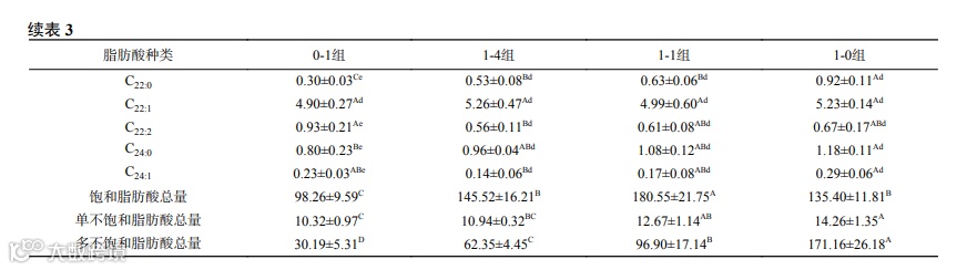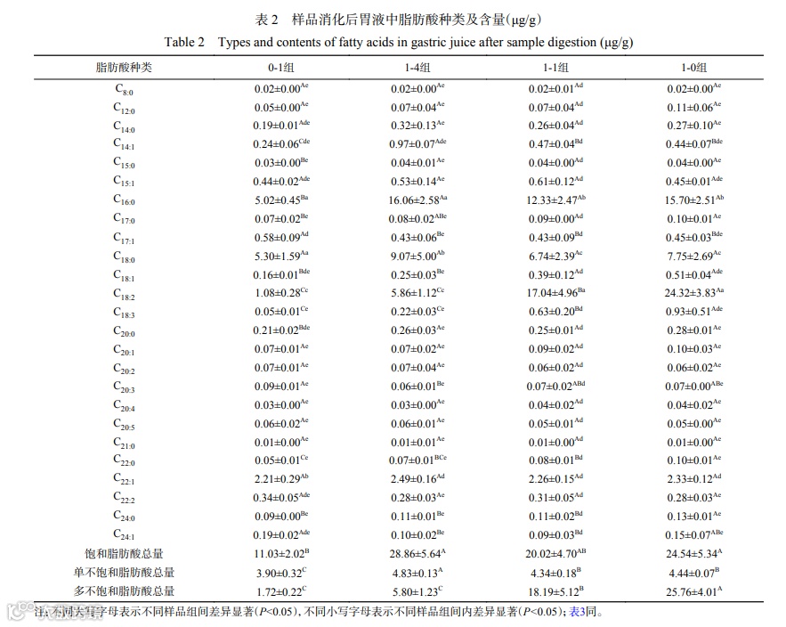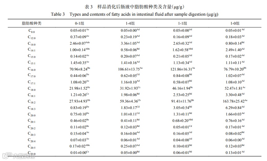 3 消化产物脂肪酸种类及含量
