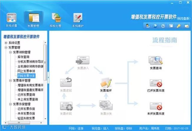 路径:发票管理——发票领购管理——网络发票分发