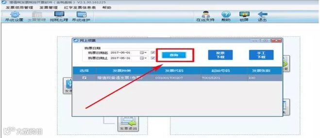 2、选择购票日期,点击查询,根据查询结果,选择需要写盘的号码段,点击发票下载,确认信息无误后,点击确定,即完成发票写盘。