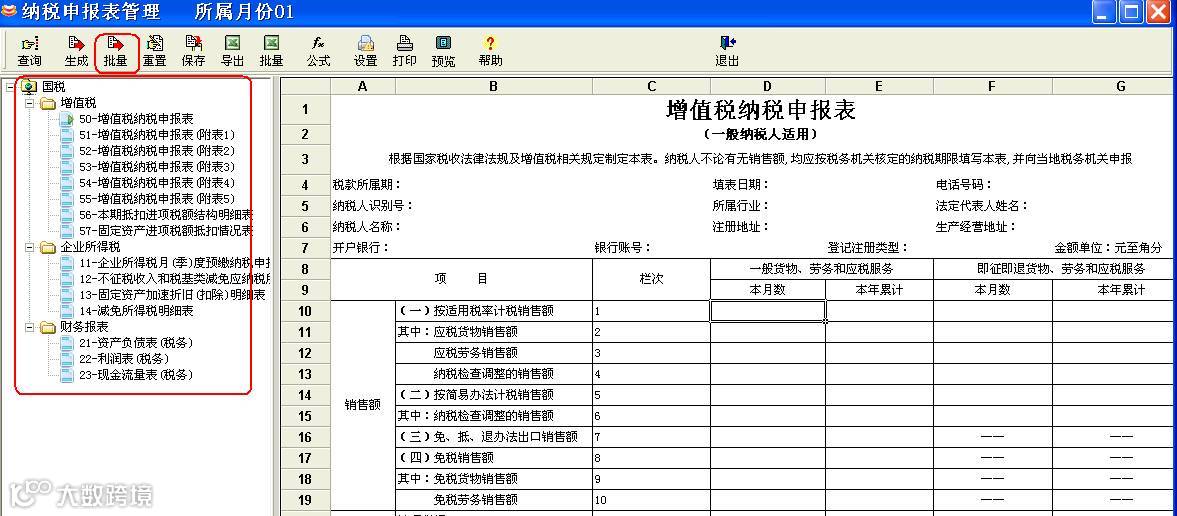 4、纳税申报表(月报、季报)一键生成,轻松报税,告别手动填表;