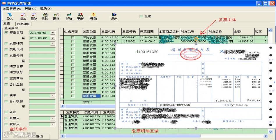 “税财通”可方便地对开票数据进行查询统计。仿真的发票票样。