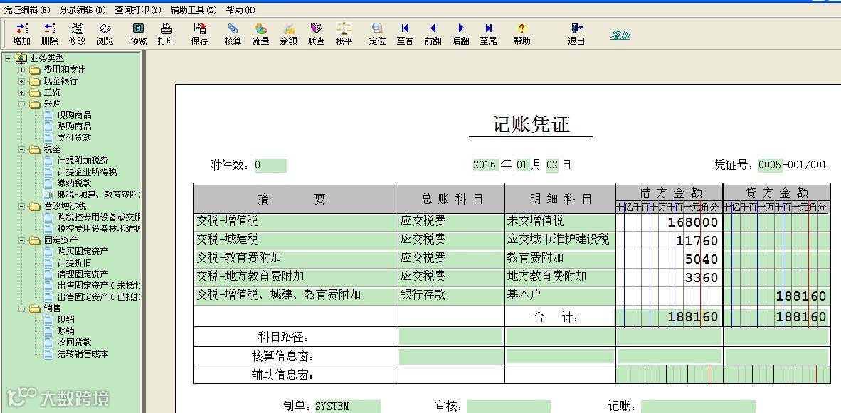 税财通自带依据业务分类的嵌入式凭证模板,模板分录依据逻辑关系预置公式,在输入第一个分录的金额之后,其他分录金额根据逻辑公式自动计算填入,做到了一张凭证只输入一个数。