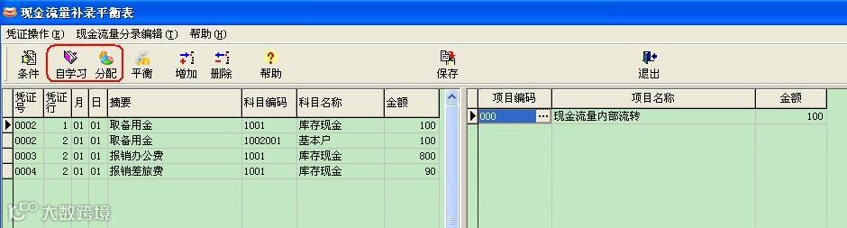 税财通可自动分配凭证分录的现金流量项目,个别无法分配的项目,通过手工分配且学习后下次可自行分配。 帮助企业轻松生成现金流量表。