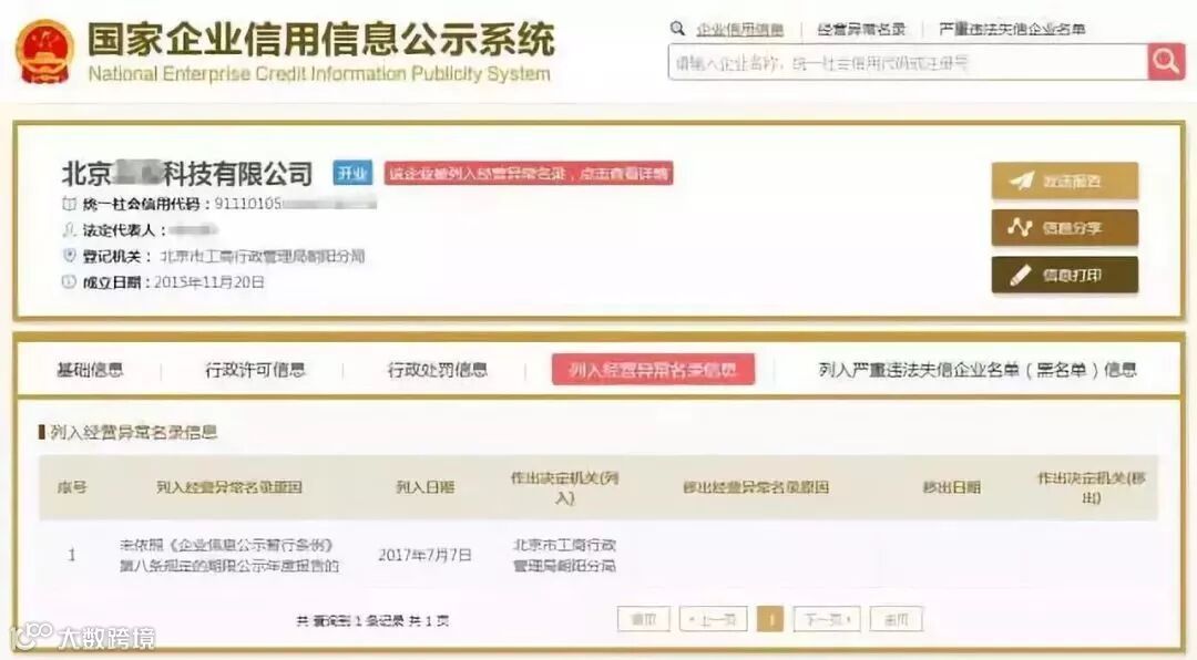 案例3:代理公司忘记给企业进行年报,企业被列入异常名录,后期又花服务费让代理公司移出。