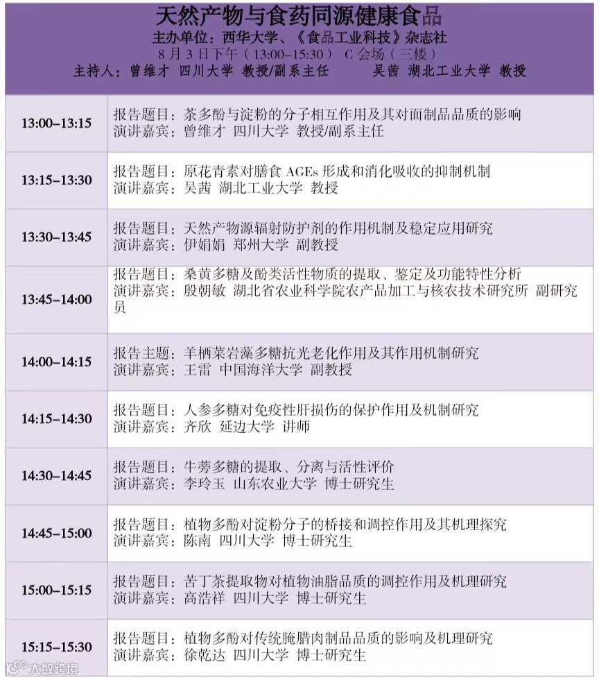 1个主会场+9个分会场:涵盖食品科学研究热点、难点与创新点,共130个食品行业主题报告。