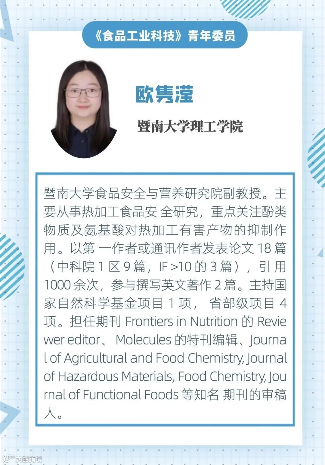 《食品工业科技》第二届青年编委团队 | 委员简介(四) 食品工业科技编辑部