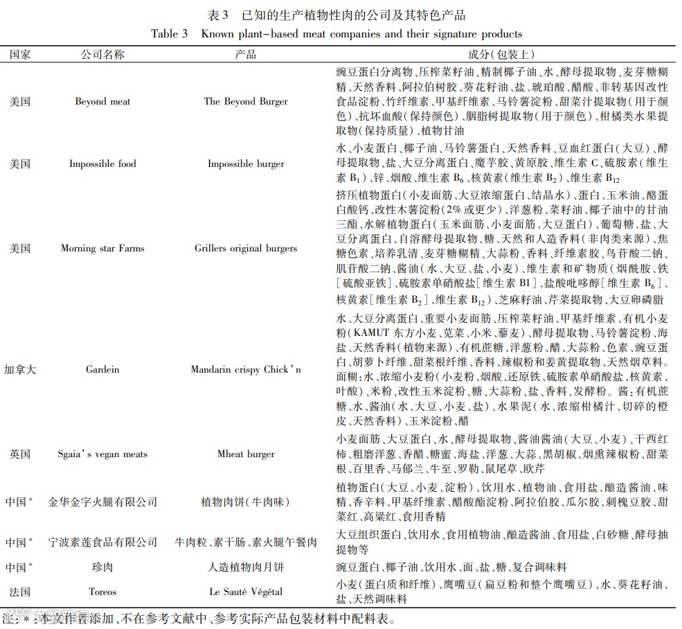 Results: Artificial meat is mainly divided into cell culture meat and plant-based meat, where culture meat refers to artificial animal meat made by extracting animal stem cells and expanded; while plant-based meat usually refers to application of plant protein and other plant-based ingredients through some techniques to prepare plant-based food with meat-like taste and flavor. Culture meat was first introduced in 2012 by Dutch scientist Mark Post, and the main productionsteps are as follows: (i) collect animal muscle samples and isolate the stem cells; (ii) then induce the cells (myogenic cells) to grow and proliferate by giving suitable nutrients and growth factorsin a suitable culture environment; (iii) further induce the cells to form multinucleated myotubes and provide scaffolds to promote muscle fiber formation; (iv) finally producethe final cultured meat by catalyzing protein cross-linking. Although cultured meat can be obtained through a range of biotechnological techniques, there are still some gaps compared to conventional meat, such as the absence of some nerve, blood and fat cells, resulting in differences in taste and flavor.On the other hand, cancer cells caused by genetic instability during the cell culture process and the use of serum with unclear composition pose a great challenge to consumer acceptability. The current survey reports that most consumers cannot accept cultured meat now, but there are some consumers who believe that science and technology can make cultured meat healthy and environmental friendly.Plant-based meat have a long history, but traditional plant-based substitutes are lack full taste, texture and flavor of meat, and thusscientists areworking to develop a novel plant-based meat with meat characteristics usingtextural plant proteins.Generally, the raw material of plant-based meat contains water (50% ~ 80%), textured plantprotein (10% ~ 25%), untextured plant protein (4% ~ 20%), fat (0% ~ 15%), flavoring agents (3% ~ 10%), binding agents (1% ~ 5%) and coloring agents (0% ~ 0.5%).Among them, plant protein is the main part of plant-based meat, providing certain structural characteristics, generally based on soy protein; fat is to give plant-based meat juicy, soft and concentrated flavor, and mainly includescoconut oil, sunflower oil, corn oil and palm oil, etc.; flavoring agents are essential in giving meat-like flavor, mainly containing some reducing sugars, flavoring amino acids and nucleotides, etc.; binding agents are mainly used for water or fat and protein bonding, usually composed of soybean isolate protein, wheat gluten and some polysaccharide gum; coloring agents are to color the product, in order to make people stimulate appetite.Plant-based meat is mainly produced by extrusion, shearing and spinning technologies. Some companies have successfully developed and produced plant-based meat products, such as plant-based burgers, plant-based meat patties, plant-based lunch meat and plant-based meat mooncakes. Owing to the consumption of traditional vegetarian products, domestic consumers are more receptive to plant-based meat than foreign consumers, but it is still difficult to influence the market of traditional vegetarian products.