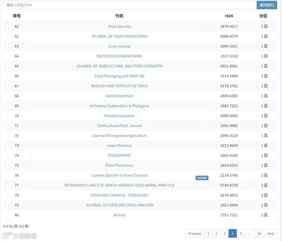 以下是今年农林科学(含食品科学)领域的部分期刊的分区情况。资料仅供参考,版权属于中国科学院文献情报中心。
