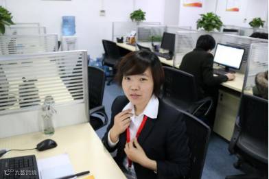 (换好工装,整理好仪容,客服王秀丽一天的工作就开始了。)