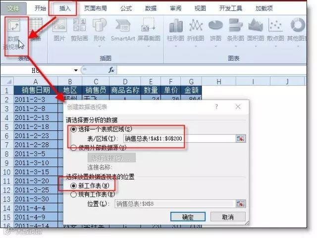选取数据区域 - 插入 - 数据透视表