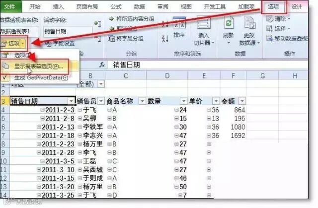 3、拆分数据透视表