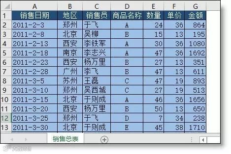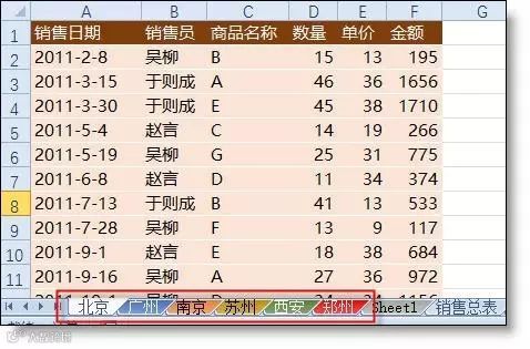 各地区销售总表,要求根据地区拆分成多个工作表保存。
