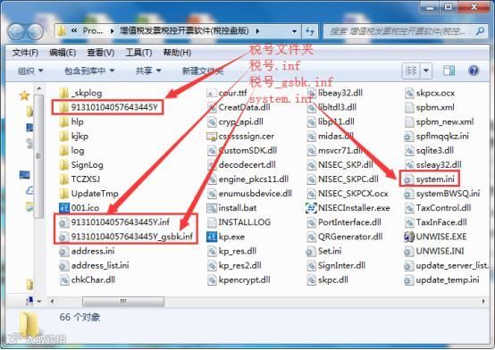 为避免数据丢失,升级前请记得备份数据:(正常情况下,在原路径下覆盖安装,数据不会丢失)。在桌面找到【增值税发票税控开票软件(税控盘版)】图标,右键点击-【属性】-【打开文件位置】-复制下图所示四个文件(一个税号文件夹、两个税号文件、一个system文件)并保存在桌面即可完成备份。