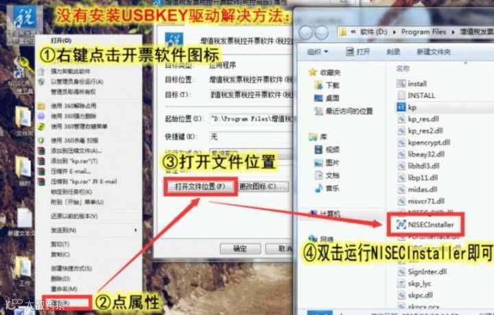 1、在桌面找到“增值税发票税控开票软件(税控盘版)”图标,右键单击,点击“属性”,然后点击“查找目标”或“打开文件位置”;