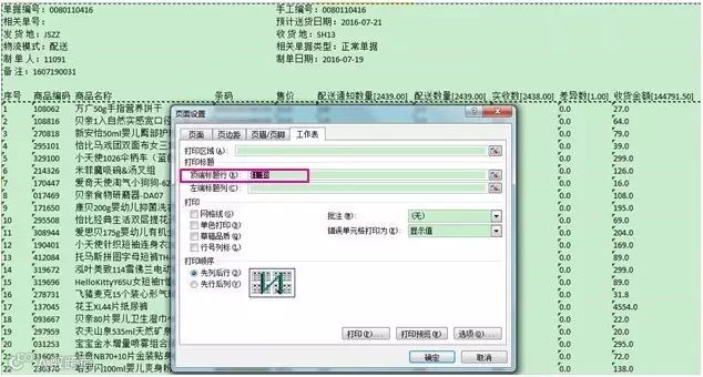 · 在页面布局中选择“打印标题”,顶端标题行中选择1-8行,确定。