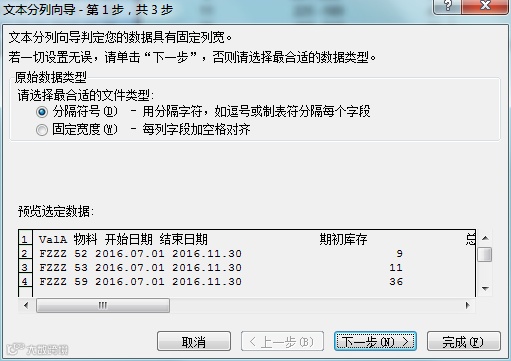 · 根据将数据分离的格式,选择分隔符号,点击下一步后,选择完成即可