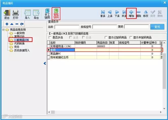 选择编码有一定的步骤和要求,编码本身也有一定的律:“1”开头是货物、“2”开头是劳务、“3”开头是销售服务…