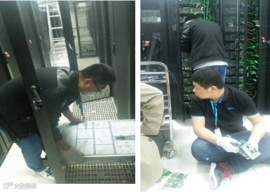 营改增期间,百望工程师白茂瑜、侯贵宝在中保信机房安装税控设备。