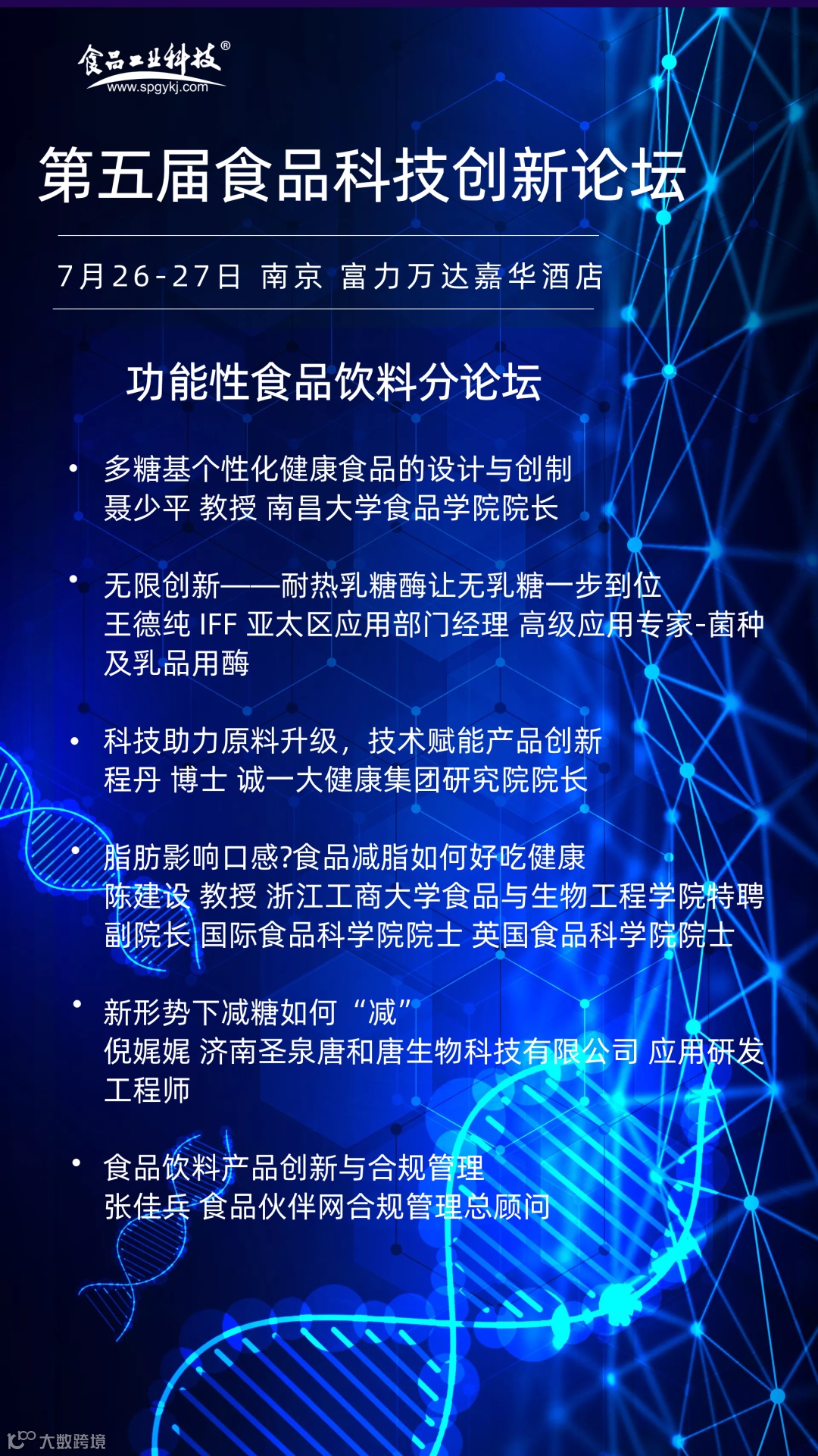 2022食品科技创新论坛 | 功能性食品饮料分论坛(7月26日下午)