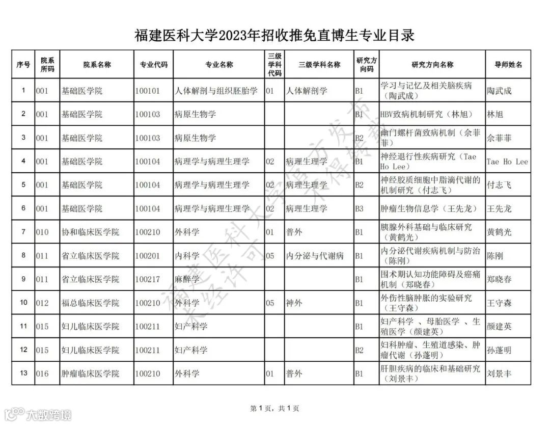 推免直博生招生专业目录详见文末。
