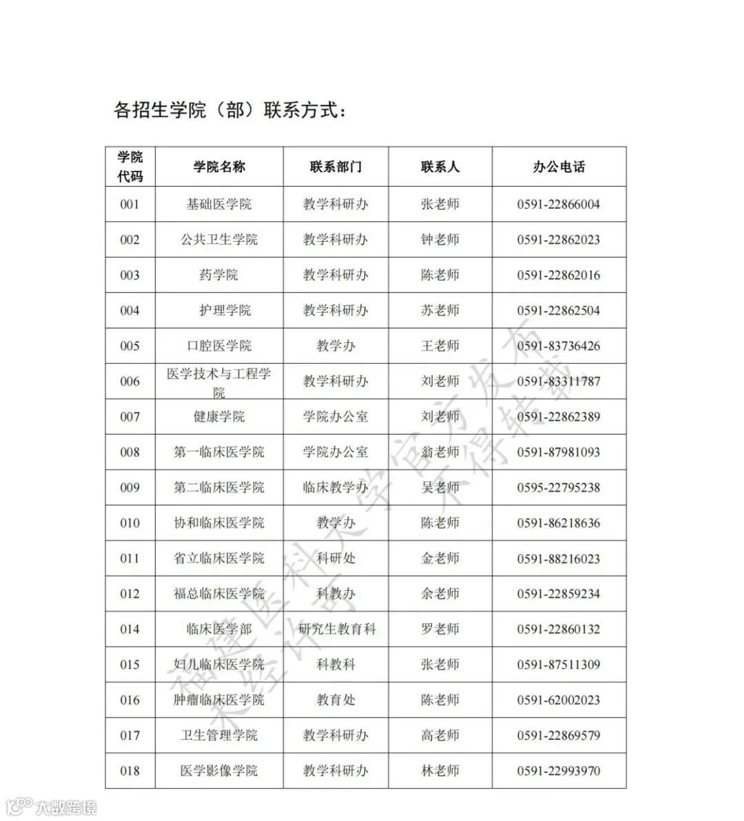 联系部门:福建医科大学研究生招生办公室