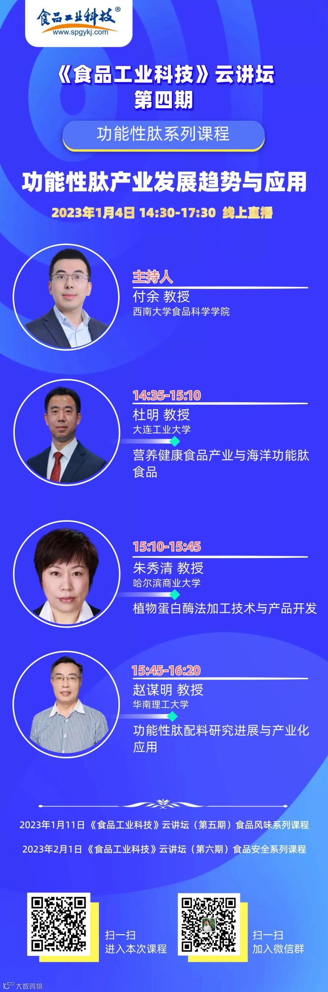 点击“阅读原文”直接进入本期直播课:功能性肽产业发展趋势与应用