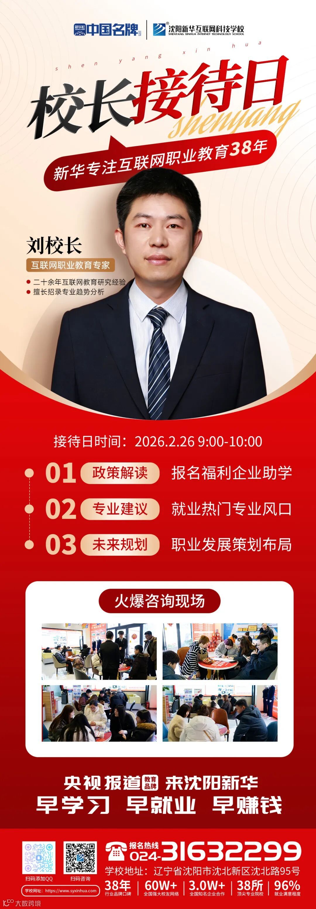 春季择校高峰已到来,我校将于2026年2月26日(农历正月初十) 举办“校长接待日”活动。学校主要领导将亲临现场,与家长和学生面对面交流,解答您最关心的问题:关于教学,关于管理,关于就业, 关于政策,校长现场办公,零距离解答专业选择、毕业就业以及规划未来等热点问题,更有多重福利等您来领!