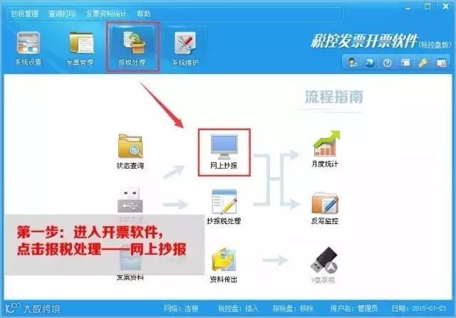 提醒(2):因升级版税控盘开具的发票是实时上传的,在没有特殊情况下,只需要在征期的时候进行抄报税。