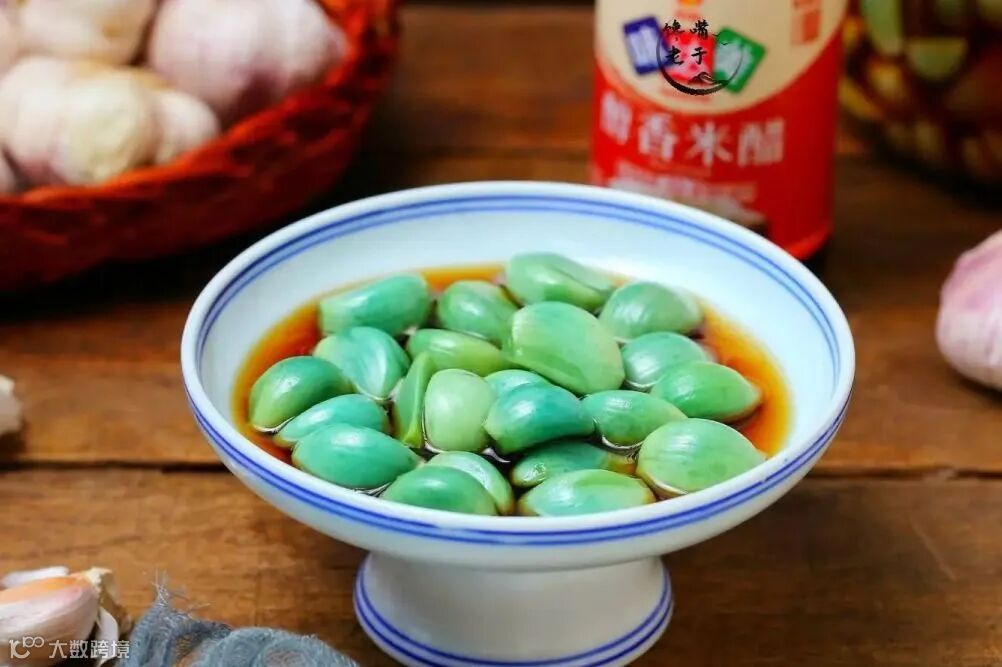 泡腊八蒜的习俗主要流行于中国北方。腊八蒜用醋腌制而成,成品色如翡翠,口味偏酸微辣。老北京吃腊八蒜还有小故事源自于“蒜”与“算”谐音。旧时各家店铺有在年前腊月结账的习俗,一般从腊八日起查算,所以腊八节也称“腊八算”。