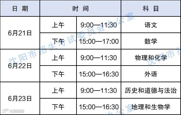 沈阳市2025年初中学业水平考试将于6月21日至6月23日进行,具体考试时间安排如下。