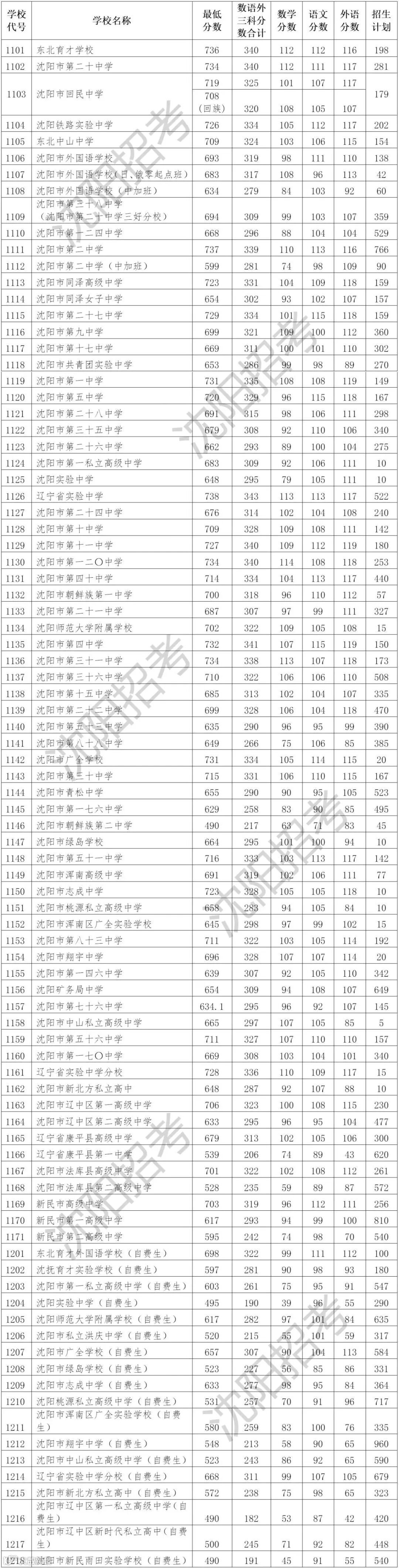 图片来源:沈阳市招生考试