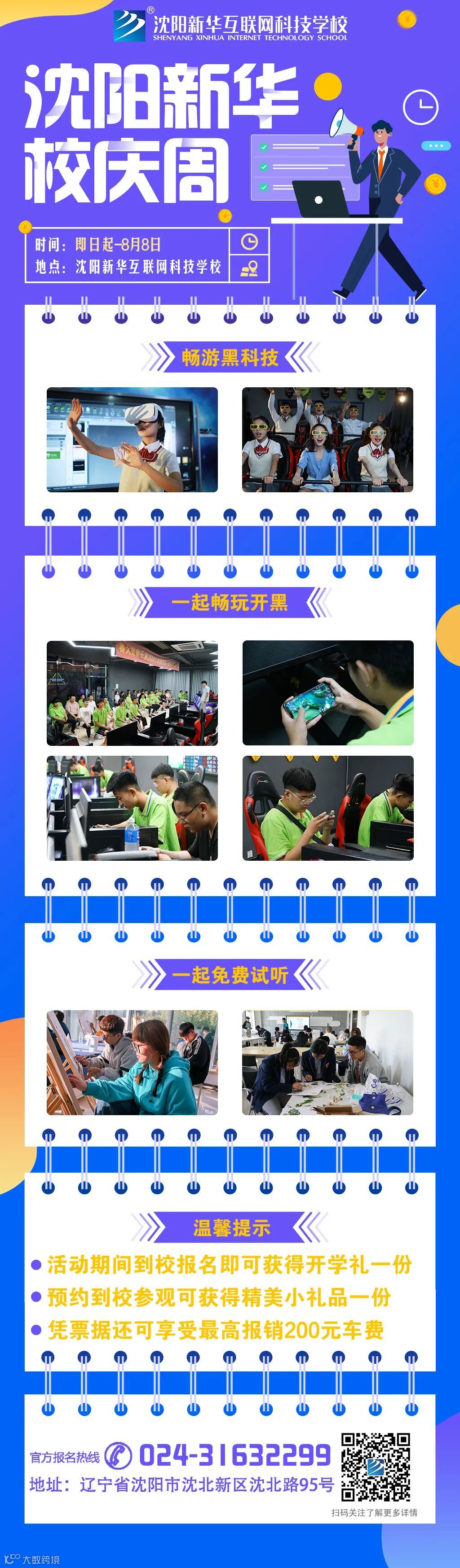 回顾新华互联网教育发展历史,展示办学成就,展望美好未来,激励师生、校友爱校荣校的精神,增强学校办学的热情,凝聚各方力量,值此新华互联网科技33周年校庆之际,沈阳新华互联网科技学校将积极筹备启动33年校庆周,如果你想感受互联网校园氛围,即日起到8月8日,相约来沈阳新华!
