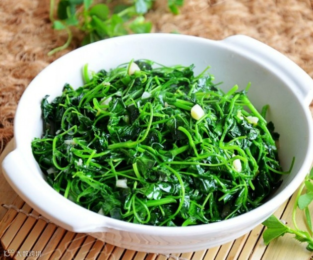 苜蓿掐去老茎,盐水浸泡10分钟后洗净 -